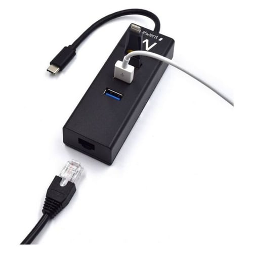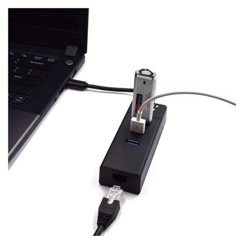 Colour: BlackPorts: 3Characteristics: Plug & PlaySpeed: 5 Gbps10-100 MB/sConnection: Type CCompatible: USB 3.1USB 3.0Cable length: 15 cmNot enough USB ports on your laptop or Ultrabook? Is your laptop’s networking port broken or not available at all on your Ultrabook? The EW1141 3-Port USB 3.2 Gen1 (USB 3.0) Hub with Gigabit network port offers the solution.The EW1141 updates your laptop/Ultrabook with three USB SuperSpeed ports and one Gigabit networking port. You will always have enough USB ports to connect your peripherals, USB stick or external HDD. The Gigabit networking port enables you to connect your Ultrabook to the wired network.The EW1141 3-Port USB 3.2 Gen1 (USB 3.0) Hub with Gigabit network port is backwards compatible with USB 2.0 and 10/100Mbps specifications.Ports quantity: 3Host interface: USB 3.2 Gen 1 (3.1 Gen 1) Type-CHub interfaces: RJ-45, USB 3.2 Gen 1 (3.1 Gen 1) Type-AUSB 3.2 Gen 1 (3.1 Gen 1) Type-A ports quantity: 3Ethernet LAN (RJ-45) ports: 1Data transfer rate: 5000 Mbit/sProduct colour: BlackCable length: 0.15 mPlug and Play: YEthernet interface type: Gigabit EthernetPower supply type: USBWidth: 103 mmDepth: 34 mmHeight: 23 mmIf you're passionate about IT and electronics, like being up to date on technology and don't miss even the slightest details, buy 3-Port USB Hub Eminent EW1141 USB 3.1 at an unbeatable price.