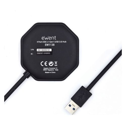 Type: USB hubColour: BlackPorts: 4Connection: USB 3.1Cable length: 15 cmSpeed: 5 GbpsCompatible: USB 2.0USB 1.1Do you need extra USB ports for your notebook or computer? The EW1138 Hub offers four extra SuperSpeed USB ports. EW1138 supports up to 4 USB devices and is compatible with the USB 3.1 Gen1 (USB 3.0) standard that offers high speed transfer rates up to 5Gbit/s.Add additional USB ports to your notebook<The Ewent EW1138 USB Hub has a light-weight design and fits easily into your bag. The hub offers four additional USB ports with high transfer speed to your notebook or computer.SuperSpeed USB 3.1 Gen1 (USB 3.0)The Ewent EW1138 Hub complies with the USB 3.0 standard. This standard enables data transfer speeds up to 5Gbit/s (up to 10x faster than USB 2.0). Connect the EW1138 to your computer with the includede 15 cm high quality USB 3.1 Gen1 (USB 3.0) cable. The EW1138 4 Port Hub is backwards compatible with USB 2.0 and USB 1.1.Ports quantity: 4Host interface: USB 3.2 Gen 1 (3.1 Gen 1) Type-AHub interfaces: USB 3.2 Gen 1 (3.1 Gen 1) Type-AUSB 3.2 Gen 1 (3.1 Gen 1) Type-A ports quantity: 4Data transfer rate: 5000 Mbit/sProduct colour: BlackCable length: 0.15 mPower supply type: USBWidth: 71 mmDepth: 71 mmHeight: 15 mmIf you're passionate about IT and electronics, like being up to date on technology and don't miss even the slightest details, buy4-Port USB Hub Eminent EW1138 USB 3.1 at an unbeatable price.