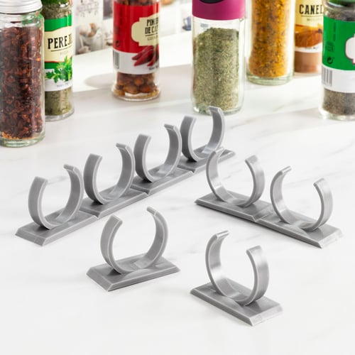 InnovaGoods is here to help you make cooking easy and fun by offering you the best new items for your kitchen, such as the Adhesive and Divisible Spice Organiser Jarlock x20 InnovaGoods Kitchen Storage! Discover a wide range of high-quality items that stand out for their functionality, efficiency and innovative design!An original, very convenient and practical adhesive and separable spice rack to always keep your spices organised and to hand, thereby optimising space in the kitchen. This portable spice rack is very versatile and adaptable since it can be divided and placed together or separately depending on your preferences and the space available. Its multi-position design means it can be placed on cupboard doors, tiles, etc. In addition, it is flexible and can be adjusted to the diameter of each jar. It can be fixed easily using adhesive, with no assembly or tools required. The quality adhesives (Nano PU Gel) provides a firm, resistant and durable hold. It has capacity of 20 spice jars (includes 5 pieces with 4 holders each). It takes up little space, is lightweight, easy to transport and to store.Material: PVCColour: GreyDesign: Original and portableType: AdhesiveUniversalMulti-useKitchen organiser: Tidy and space savingCapacity: 20 spice containersVersatile and adaptable: Multi-positionDivisible: Can be cut and positioned together or separatelyFlexible: Adjustable diameterEasy installation using adhesive: No assembly or tools requiredHigh-quality adhesives: Nano PU GelFirm hold: Robust and durableConvenient and easy to use: Easy installation in cabinet doors, on tiles, etc.Compact: Takes up a small amount of spaceLight and manageable: Easy to transport and storeIncludes: 5 units with 4 holders eachApprox. dimensions: 5x (20,2 x 2,4 x 3,8 cm)Packaging and manual in 24 languages: English, French, Spanish, German, Italian, Portuguese, Dutch, Polish, Hungarian, Romanian, Danish, Swedish, Finnish, Lithuanian, Norwegian, Slovenian, Greek, Czech, Bulgarian, Croatian, Slovakian, Estonian, Russian and Latvian