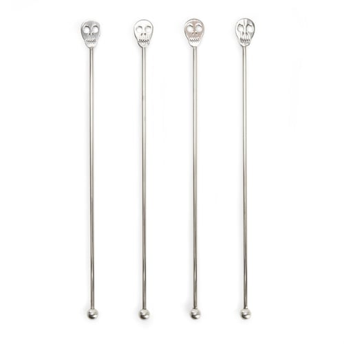 I like my cocktails like I like my skulls - stirred, not shaken! Raise the spirits with these skull-shaped drink stirrers. Set of 4 stainless steel stirrers.