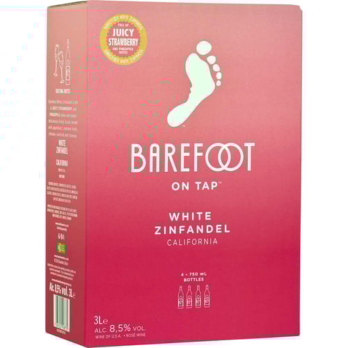 Barefoot White Zinfandel is an extremely popular wine presented in a convenient 3 liter packaging. This delicate rosé is characterized by its mild 8.5% alcohol content and characterful flavour profile. With a pleasant balance of fresh, fruity notes and a light sweetness, it's a wine that will please most people. Serve it with fish, salads or mild cheeses. Ideal for cozy evenings or for larger parties.