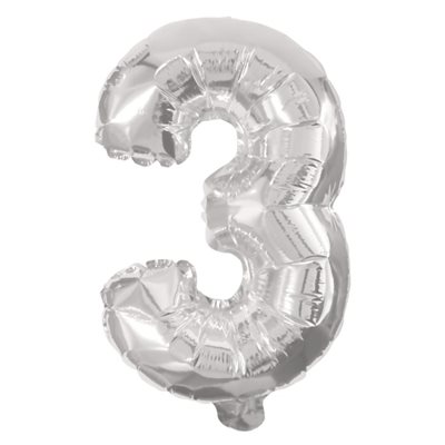 Folie ballon i sølv farve, nr 3, str: 31-33 cm_0