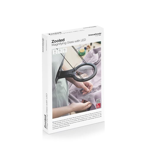 If you are passionate about the world of gadgets, InnovaGoods offers you the best and most original new items for the home, car, travel, children, technology, entertainment, etc.! Discover a wide range of high-quality products that stand out thanks to their functionality, efficiency and innovative design, such as the Hands-Free Magnifying Glass with LED light Zooled InnovaGoods!A magnifying glass with LED light and original hands-free design which makes it easy to use in complete comfort for a variety of tasks. It has a main lens with x2 magnification and another smaller secondary lens which enables you to see with a higher magnification (x5). The LED light also makes it easier to see. It is switched on and off using the on/off button and works using 3 x AAA batteries (not included). Another of its great advantages is its hands-free and multi-position design, it can be placed in different positions to adapt to your needs and preference at any given time or place. Includes an adjustable cord so it can be hung easily from the neck. Its non-slip base provides a firm hold. This multifunction and multipurpose magnifying glass is ideal for reading, sewing, handicrafts, DIY and repairs, etc.Material: PPColour: BlackOriginal design: Innovative and functionalType: Magnifying glass for readingMultifunction: 2-in-1Multi-use: Versatile and adaptableMulti-position: Convenient and easy to useHands free function: Easy to useLarge lens: x2 magnificationSmall lens: x5 magnificationLED Light: 2 x 0,06 WOn/off button: Single buttonBattery operated: 3 x AAA, not includedNon-slip base: Firm holdCord for hanging: AdjustableLight and manageable: Easy to transport and storeApprox. dimensions: 13,5 x 23 x 2 cmPackaging and manual in 24 languages: English, French, Spanish, German, Italian, Portuguese, Dutch, Polish, Hungarian, Romanian, Danish, Swedish, Finnish, Lithuanian, Norwegian, Slovenian, Greek, Czech, Bulgarian, Croatian, Slovakian, Estonian, Russian and Latvian