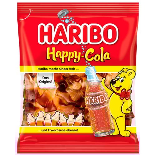 Ingredients: Glucosesirup, sukker, gelatine, dextrose, syrer (citronsyre),karamel sirup, aroma, overfladebehandlingsmidler (bivoks hvidt og gult, carnaubavoks). Kan indeholde spor af mælk og hvede.