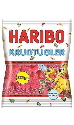 Ingredients: Glukosesirup, sukker, gelatine, surhedsregulerende middel (citronsyre), frugt og plantekoncentrater (radise, søde kartofler, gulerod, saflor, solbær, hibiscus), invert sukker sirup, menthol (eucalyptusolie), smag.