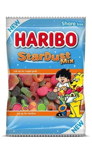 Ingredients: Sukker, glukosesirup, gelatin, brunt sukkersirup, forsyrer (citronsyre), majsstivelse, dextrose, lakridsekstrakt, frugt og plantekoncentrater (spirulina, saflor, æble, citron, radise, sød kartoffel, gulerod, solbær, hibiscus), invertsukkersirup, aromastoffer, ammoniumsalt, karamelsirup, ferskenjuice fra koncentrat, farvestof (ægte karmin). Opbevares køligt og tørt.