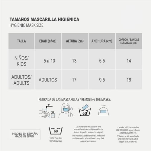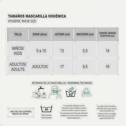 The Hygienic Reusable Fabric Mask Looney Tunes Children's Pink is an exclusive, top-quality product for body care. If you are looking for the best personal hygiene products, the 100 % original Looney Tunes products are just what you’re looking for.Colour: PinkMaterial: 100 % polyesterApprox. dimensions: 13 x 5,5 cmRecommended Use: Children'sWashed: The materials used in this mask resist multiple washing cycles without losing their original appearance5 washes at 60 ºC according to UNE 0065:2020