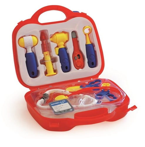 Little girls and boys who dream of becoming a doctor can start here. Large medical kit with stethoscope, thermometer and other equipment needed for you to start examining and treating dolls and teddy bears that feel a bit poorly