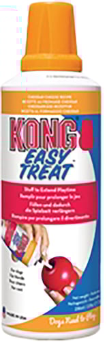 Easy Treat® Cheddar Cheese is a delicious treat that delights all types of dogs while providing an easy no-mess solution for pet parents. Made in the USA, this highly-digestible and trans-fat free treat is an enticingly delicious addition when added to a stuffed KONG. A uniquely designed nozzle easily controls the amount of KONG Easy Treat while also having the added benefit of a convenient, no mess stuffing solution. Want to make your stuffed KONG last longer? Freeze a stuffed KONG, topped with Easy Treat® Cheddar Cheese for a longer-lasting, mind occupying challenge. No Refrigeration required.