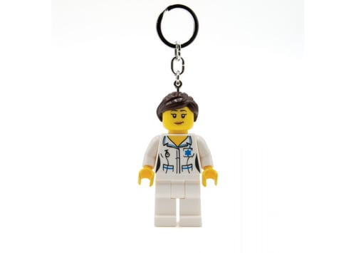 LEGO Keychain with a large minifigure with movable arms, a bright LED light in both feet, movable legs to let the light shine in different directions and a button on the body to turn on the lights. Very nice for a (school) bag, coat or bunch of keys.