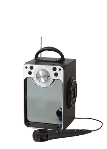 This karaoke maschine has cool light effects, a microphone and came play a wide range of songs. The machine har a rechangeable battery, AUX in, USB charging cabel and bluetooth. It is easy to use and gives you the chance to discover your inner popstar.