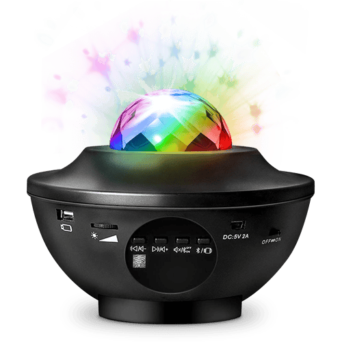 Transform your room into a galaxy of shining stars. Projecting a colourful galaxy of stars onto the ceiling and walls, this projector speaker will make you feel like you're floating among the stars. Pair the speaker with your Bluetooth device and you can listen to your favourite music while enjoying the atmosphere. The speaker is also ideal for enhancing the atmosphere at parties. Remote control included. From 6 years old.