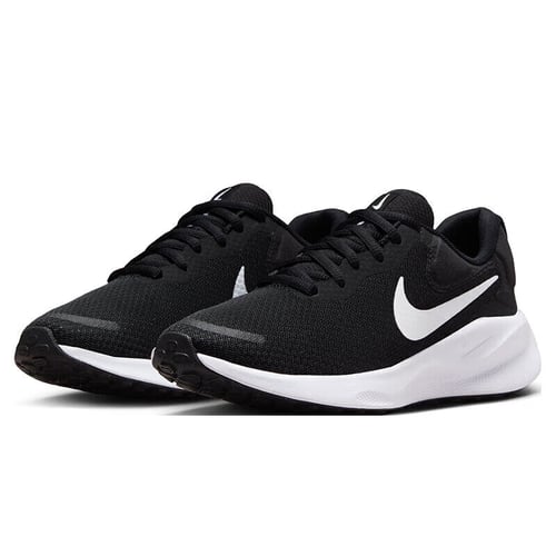Designed with the modern runner in mind, the Revolution 7 offers a soft cushion experience that ensures each step is gentle on your feet, reducing fatigue and enhancing endurance. Its comfortable foam midsole coupled with a durable rubber outsole delivers the best of both worlds—cushioning and robustness for daily runs. Additionally, the sleek black-and-white color scheme presents a versatile aesthetic that pairs effortlessly with any athletic wear. Whether you're an entry-level runner or an experienced athlete, the NIKE Revolution 7 shoes will elevate your running game to new heights.