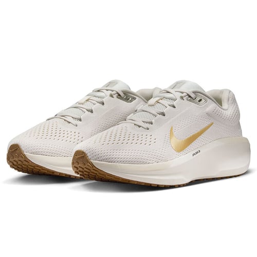 Designed with both style and practicality in mind, these shoes feature a stylish off-white and gold color scheme that's sure to catch eyes. The rubber outsole includes a tread pattern inspired by artisan waffle designs, ensuring superior grip and traction on multiple surfaces. Reflective details are strategically placed to keep you visible in low-light conditions, adding an extra layer of safety. Experience the perfect blend of comfort, durability, and cutting-edge design with the Nike WINFLO 11, your reliable companion for all your running aspirations.