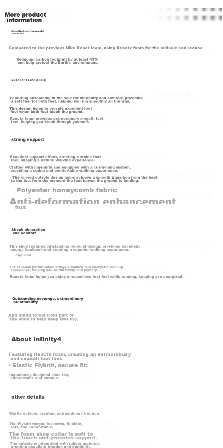 **Environmental Commitment:** The Reactx midsole reduces carbon footprint by at least 43% compared to previous Nike React foam, contributing to environmental protection.