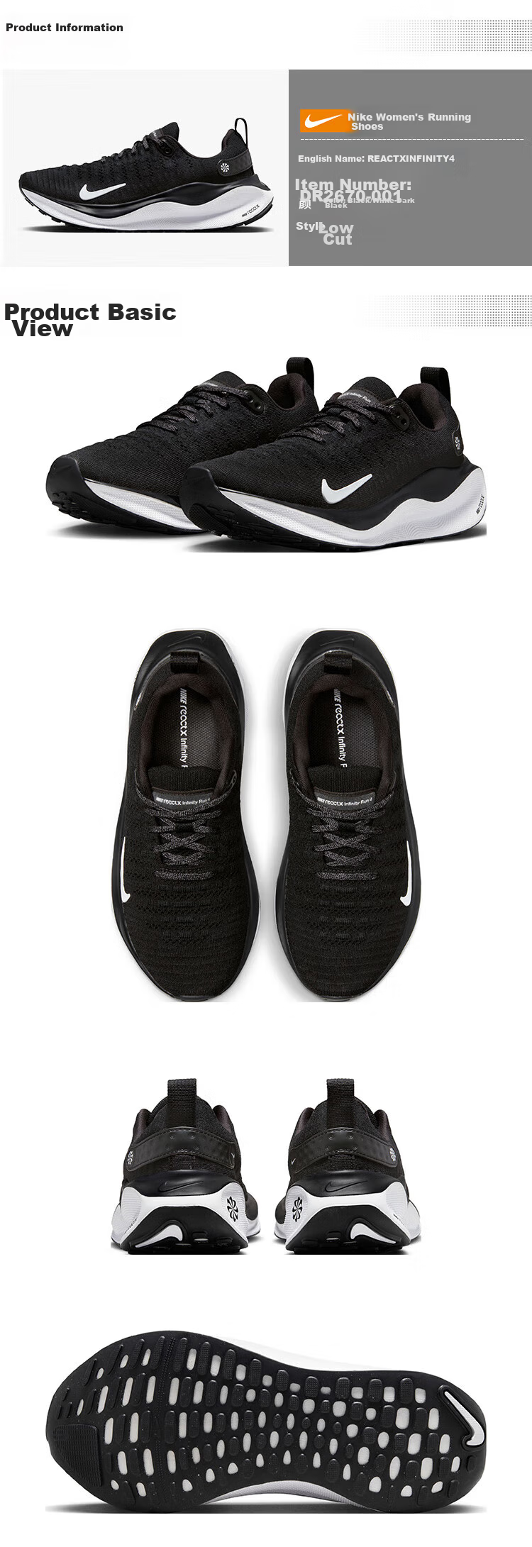 NIKE Women's Running Shoes with Cushioning REACTX INFINITY 4 Sneakers DR2670-001 Black And White Size 35.5_0