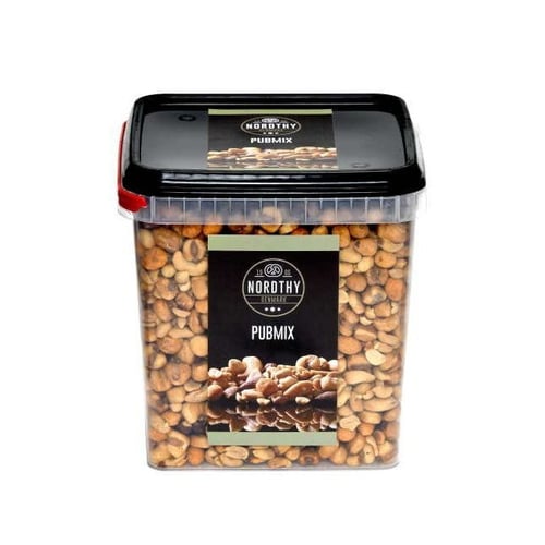 Ingredients: 46% JORDNØDDER, 21% majs, 10% MANDLER, 10% CASHEWNØDDER, vegetabilske olier (solsikke, JORDNØDDE, raps), kartoffelstivelse, majsstivelse, salt, sukker, farvestof (paprikaekstrakt), rosmarinekstrakt, gurkemejeekstrakt, paprika, syre (citronsyre), HVEDEMEL, chili, smagsforstærker (E621), oreganoekstrakt, løgpulver, antiklumpningsmiddel (E551), hvidløg, hævemiddel (E503ii), spidskommen, aroma, tomatpulver, SOJAproteinhydrolysat. Kan indeholde spor af andre nødder, mælk, æg, sesam og lupiner. Tænk på, at nødder kan sætte sig fast i småbørns hals.
