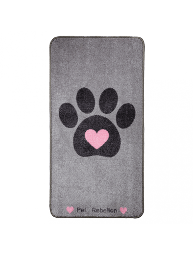 The mud carpet has an absorbent surface which helps remove most dirt from the paws. The rug has a non-slip backing.