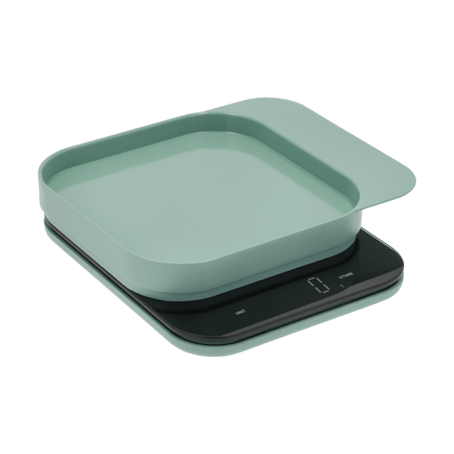 Mensura kitchen scale with LED display can weigh up to 10 kg with intervals of 1 g. The bowl is made of ABS plastic holds 600 ml and functions as a lid when the scale is not in use.