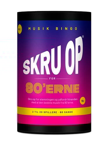 Musikbingo med alt hvad du skal bruge til en festlig aften. Inviter dine venner og dyst i viden om musik fra 80´erne. Fed playliste med 60 suveræne musiknumre fra nogle af de største kunstnere