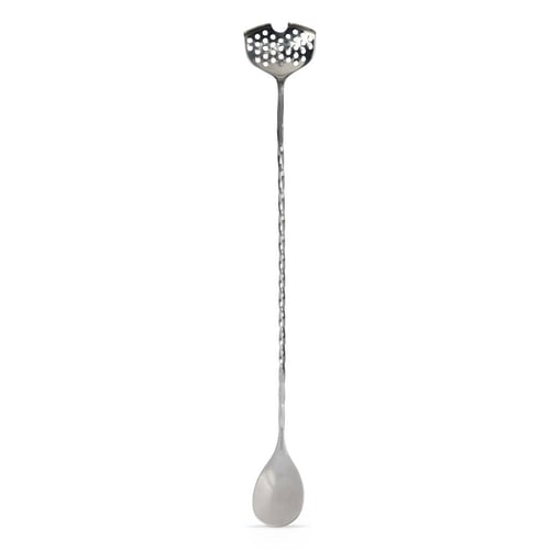 The bartender's signature tool: a durable stainless steel spoon that doubles as a strainer. An excellent addition to the cocktail enthisuast's home bar. Dishwasher safe. Product Dimension: 11.50 x 1.75 Packaging Dimension: 3 x 14.50 Material: stainless steel 304