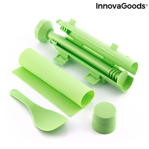 InnovaGoods is here to help you make cooking easy and fun by offering you the best new items for your kitchen, such as the Sushi Set with Recipes Suzooka InnovaGoods 3 Pieces Kitchen Foodies! Discover a wide range of high-quality items that stand out for their functionality, efficiency and innovative design!A complete sushi set which is very comfortable and practical to prepare sushi more easily and quickly. It includes several accessories with a specific design for this purpose (mould, spoon and mat) that allowyou to achieve a professional result. First, you have to place the cooked rice inside the mould with the help of the spoon and make the hole in the center with the plunger. Next, the desired ingredients are placed, pressed and the compact rice roller is extracted on the seaweed. Then, it is rolled and pressed with the mat, cut into thick slices and exquisite sushi is ready to serve and enjoy.Material: PPSiliconeBPA-freeInnovative and functional designCircular mould: Ø 6 x 29,5 cmSilicone mat: 22 x 22 cmNon-stick spoon: facilitates rice preparationConvenient and easy to useEasy to transport and storeSuitable for dishwashersPackaging, manual and recipes in 24 languages: English, French, Spanish, German, Italian, Portuguese, Dutch, Polish, Hungarian, Romanian, Danish, Swedish, Finnish, Lithuanian, Norwegian, Slovenian, Greek, Czech, Bulgarian, Croatian, Slovakian, Estonian, Russian and Latvian