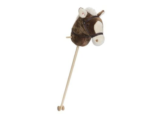 This cuddly hobby horse with sound has a modern design in a contemporary brown colour and with exquisite details. This hobby horse has wooden handles on either side of its head and wooden wheels at the bottom of the stick which gives the child extra control during his/her play. It can make gallopy sounds which enhances the playtime. It is CE-marked according to EN71. Size: 100 cm.