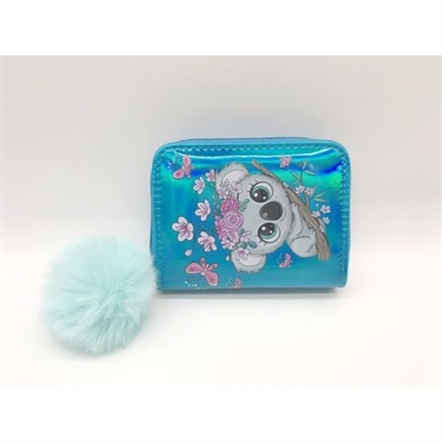 Tinka - Wallet Koala is a shiny turquoise wallet with zipper and pom pom