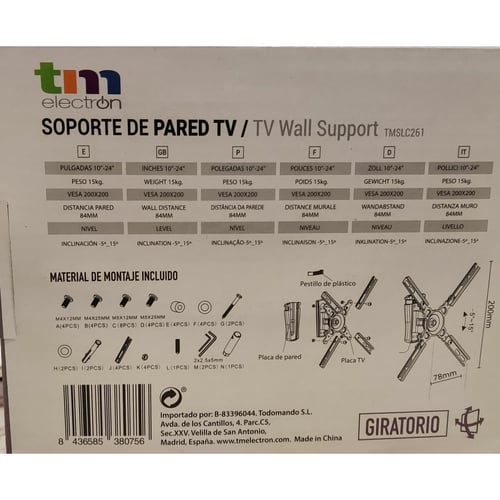 If you're passionate about IT and electronics, like being up to date on technology and don't miss even the slightest details, buy TV Mount TM Electron 15 kg 10-24 at an unbeatable price.Screen: 10-24Max. supported weight: 15 kgInclination: -5º / 15ºCompatible: VESA 200 x 200 mmInstruction manual: Includes mounting accessories