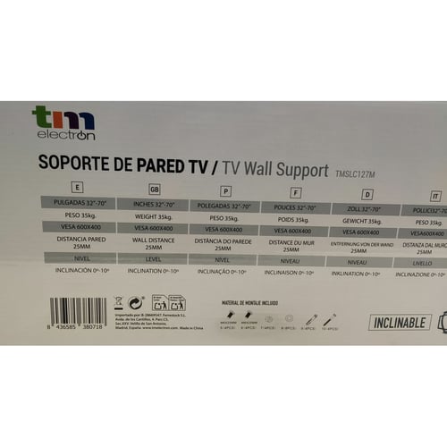 If you're passionate about IT and electronics, like being up to date on technology and don't miss even the slightest details, buy TV Mount TM Electron 32-65 35 kg at an unbeatable price.Inclination: Adjustable0º/10ºScreen: 32-65Max. supported weight: 35 kgCompatible: VESA 600 x 400 mmInstruction manual: Includes mounting accessories