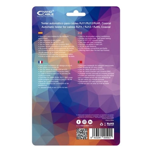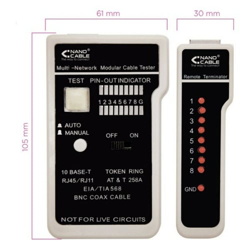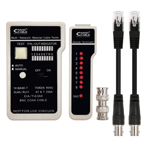 Type: CableCablingConnections: RJ45RJ11RJ12BNC,RJ-11,RJ-12,RJ-45Coaxial BNCCharacteristics: LED indicatorCertificate: RoHSProfessional tester for testing cables RJ11 / RJ12 / RJ45 and coaxialSupported connectors: BNC,RJ-11,RJ-12,RJ-45Product colour: Black, WhiteLED indicators: YCable type: STP/UTPSustainability certificates: RoHSPackage length: 3 cmPackage width: 110 mmPackage height: 230 mmPackage weight: 160 gIf you're passionate about IT and electronics, like being up to date on technology and don't miss even the slightest details, buyUTP Category 6 Rigid Network Cable RJ11/RJ12/RJ45, coaxial NANOCABLE 10.31.0303 at an unbeatable price.