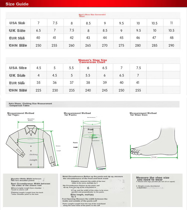 **Measurement Methods for Clothing and Shoe Sizes:**