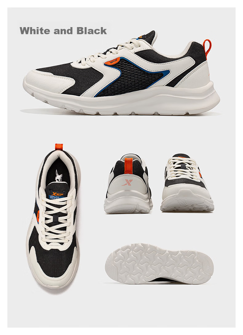 XTEP Men's Running Shoes, Sports Shoes for Men, Lightweight Shock-Absorbing Casual Sneakers, Student Shoes, White And Black, Size 39_0