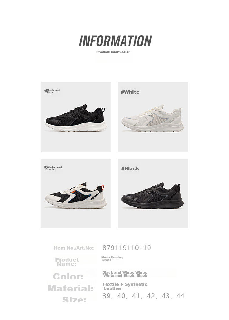 XTEP Men's Running Shoes, Sports Shoes for Men, Lightweight Shock-Absorbing Casual Sneakers, Student Shoes, White And Black, Size 39